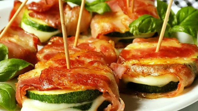 Tato malá roztomilá křupavá kolečka cukety s rozpuštěným sýrem a šťavnatou slaninou, vytváří perfektní kombinaci chutí. Ideální jako předkrm nebo malé pohoštění, se kterým zabodujete na sešlosti nebo oslavě.