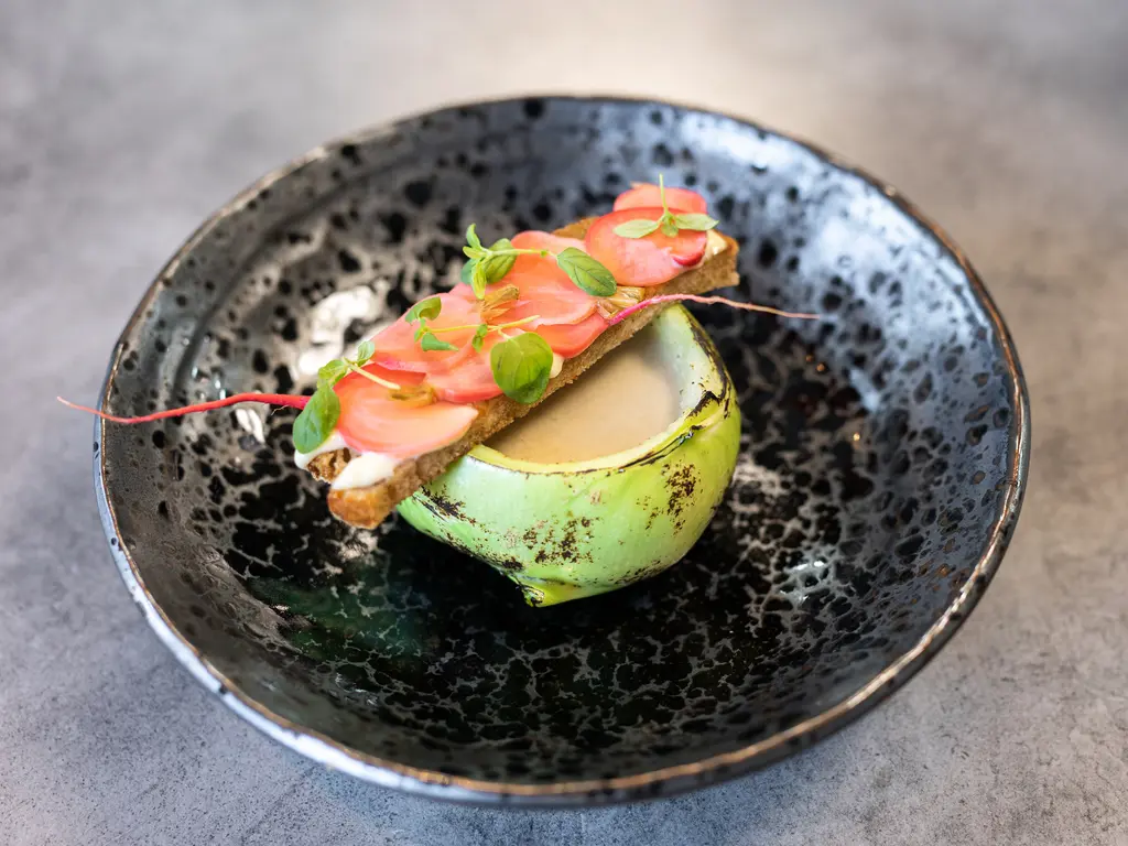 Kedlubnová polévka a chlebíček s nakládanými ředkvičkami