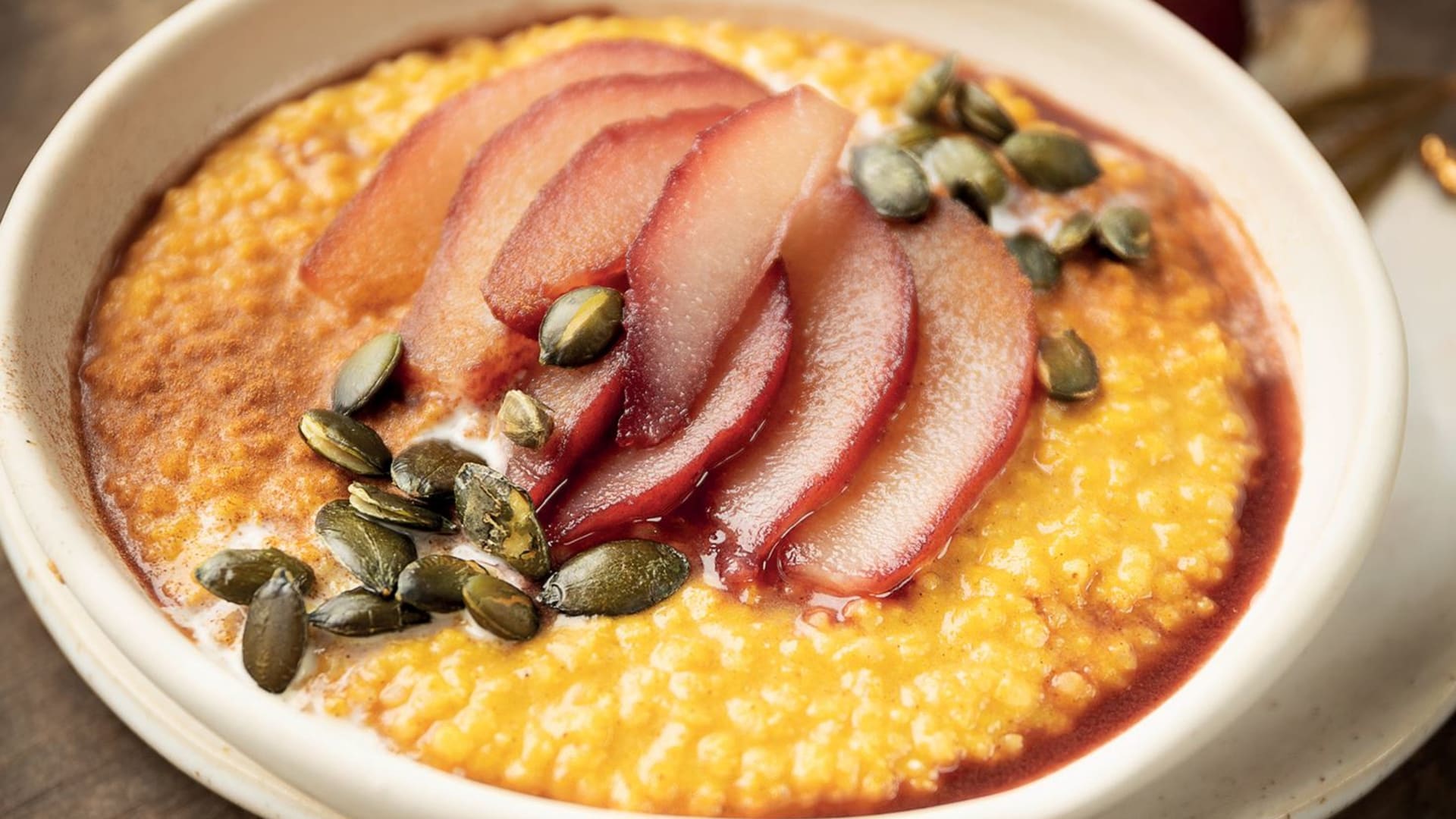 Jáhlová kaše se po staletí podávala při štědrovečerní večeři jako jedno z obřadních jídel pro zachování úrody, hojnosti a zdraví. Povařte jáhly v kokosovém mléce s kardamomem a skořicí, čímž jim dodáte přirozenou sladkost, a podávejte je s pošírovanou hruškou v červeném víně. Slavnostní, a přesto tradiční, dezert par excellence, který můžete podávat po celý rok.