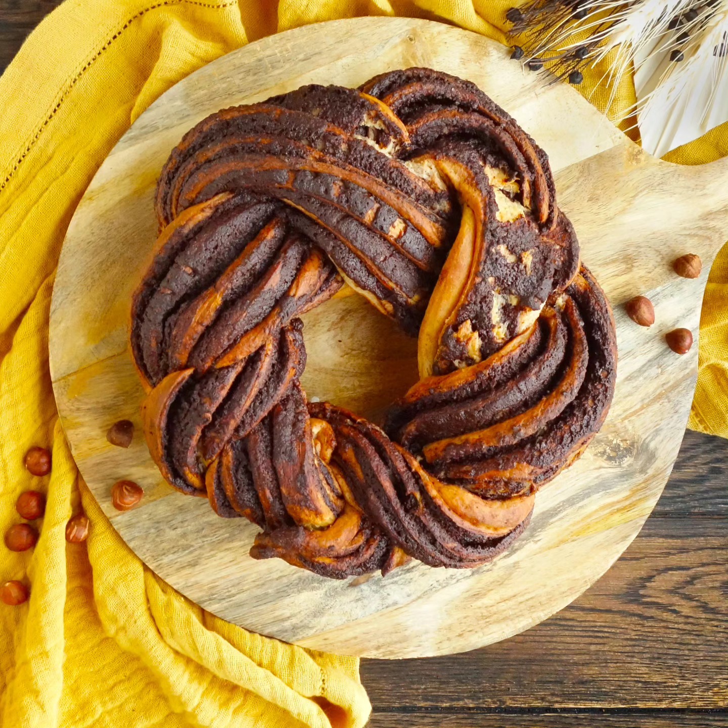 Estonský kringel má více variant. Tento recept využívá vláčné brioškové těsto a náplň z kakaa a čokolády.