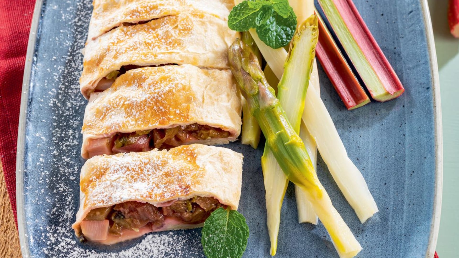 Kulinární toulky jižní Moravou: Závin z listového těsta s chřestem a rebarborou