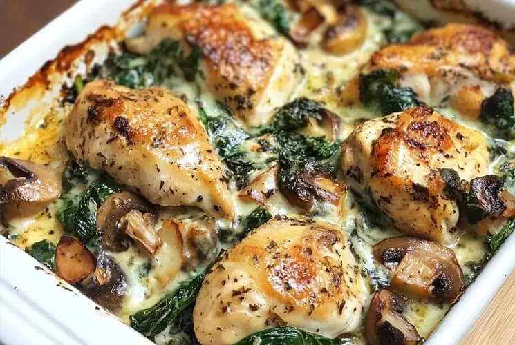 Kuřecí špenát a houby, nízkosacharidové jídlo z trouby