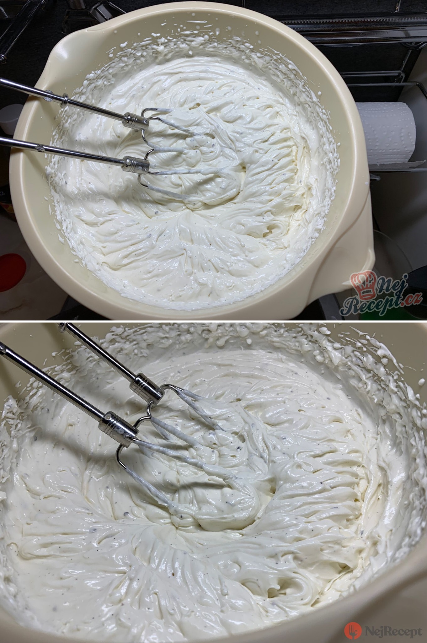 Žádné těžké máslové krémy, žádné složité postupy. Stačí smíchat mascarpone, šlehačku, cukr a vnitřek vanilkového lusku. Dokonalý krém máte hotový za 10 minut.