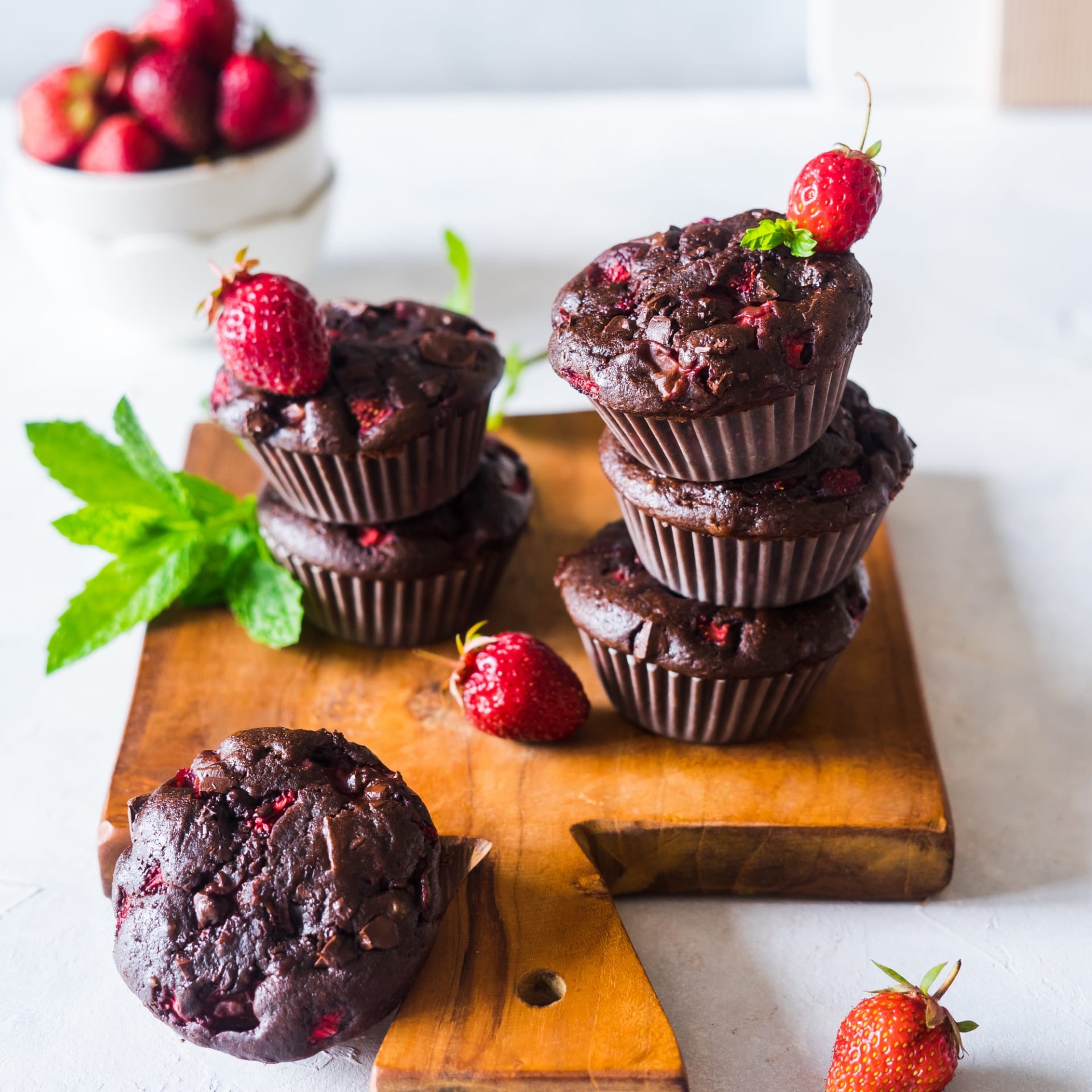 Vláčné čokoládové muffiny s jahodami