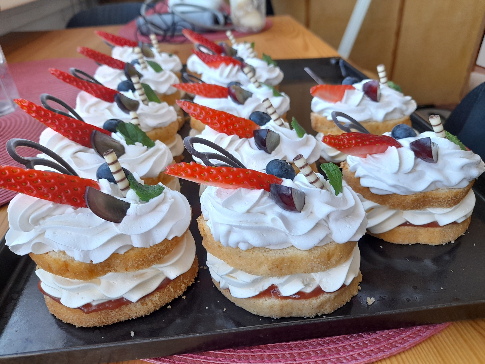 Ingredience: Na piškot: 3 vejce 110 g cukru krystal 130 g hladké mouky Špetka soli 1 polévková lžíce oleje (Volitelné) Marmeláda + rum na promazání Na krém: 0,3 dcl mléka 2 polévkové lžíce cukru krystal 1 vanilkový pudink Rum (podle chuti) 400 ml šlehačky (na ozdobení) Pokyny: Příprava piškotu: