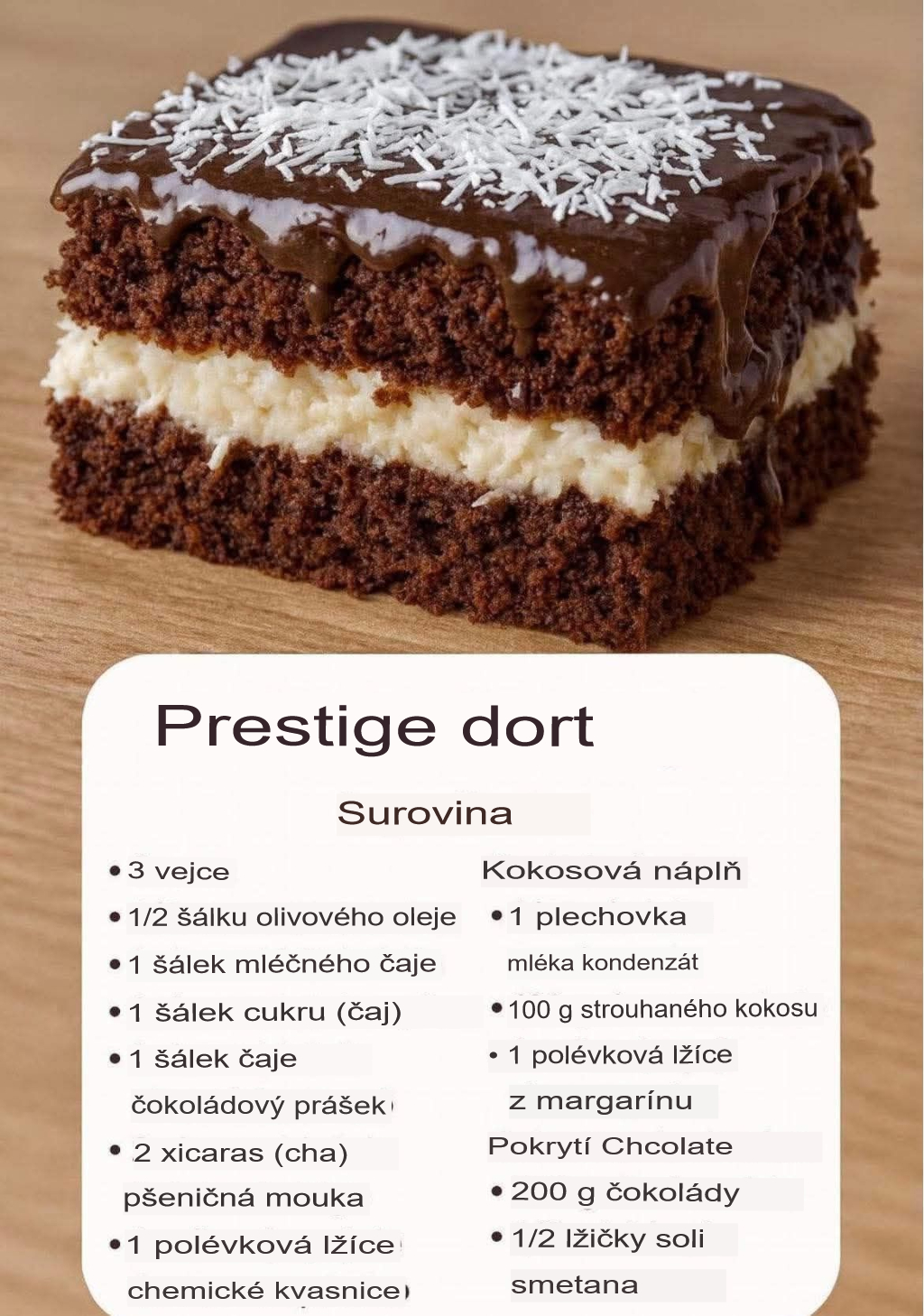 • 100 g (nebo 1 šálek) strouhaného kokosu.