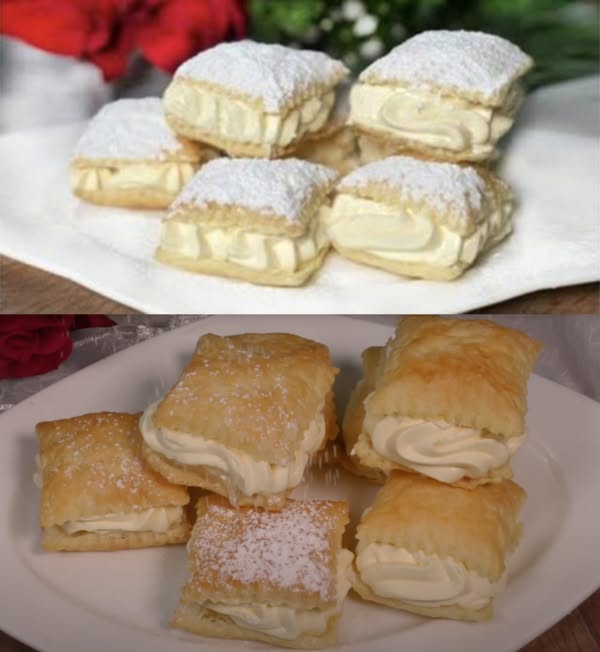 Pokud hledáte rychlý a jednoduchý dezert, který svou chutí připomíná větrníky, vyzkoušejte tyto křehké polštářky z listového těsta. Jsou neuvěřitelně lehké, nadýchané a plněné jemným vanilkovým krémem. Příprava zabere jen pár minut a výsledek je naprosto fantastický!