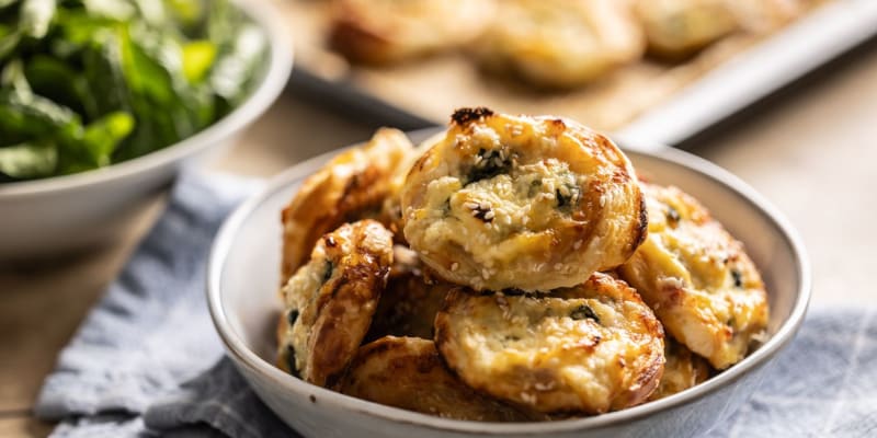 Chuťovky z listového těsta jsou velmi vděčné, a to jak pro strávníky, tak pro ty, kteří pohoštění připravují. S pomocí předpřipraveného těsta tuhle dobrotu zvládne i zcela nezkušený kuchtík, téměř s jistotou, že jeho výtvor bude mít úspěch. Možností, jaké ingredience do těsta zamotat, je mnoho. Zkuste třeba uzenou slaninu, tučný sýr a dobře dochucený špenát.